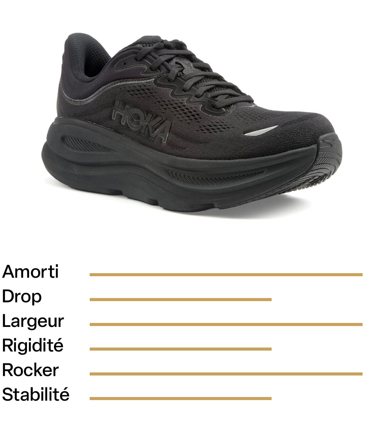 Ces sneakers ont été sélectionnées pour leur amorti équilibré, leur rocker prononcé, leur stabilité accrue, une bonne rigidité sur l’avant pied et leur semelle intérieure amovible.