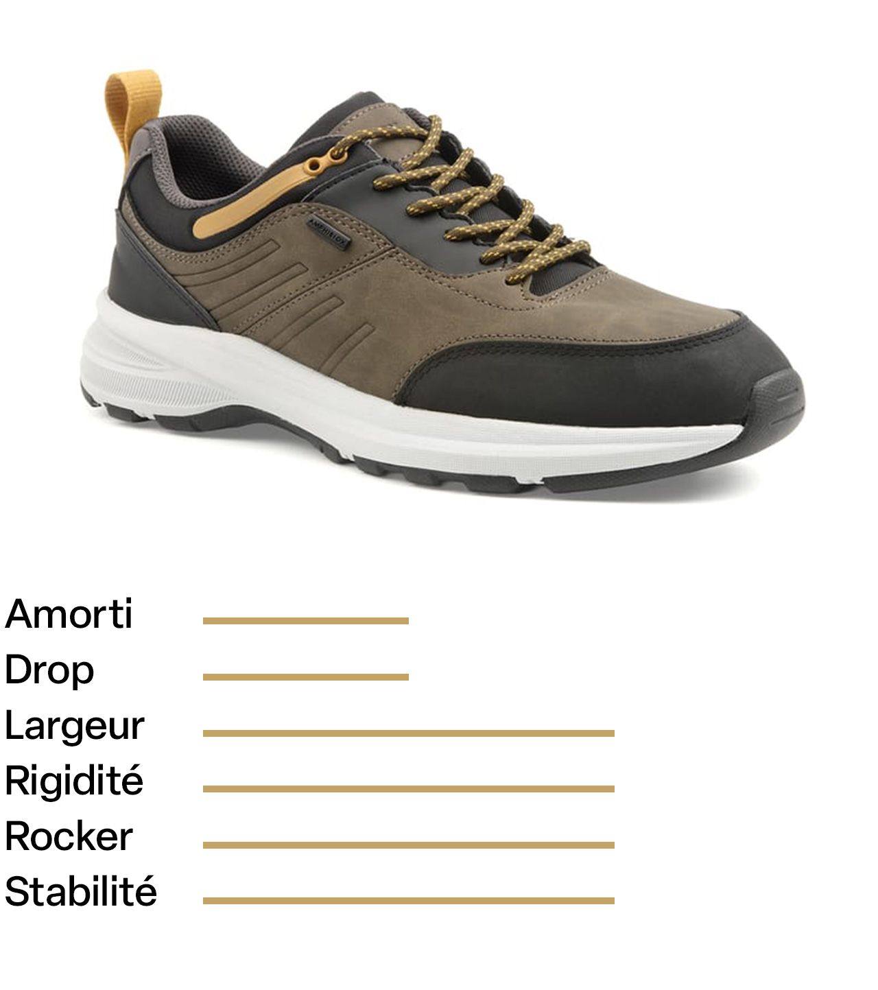 Ces sneakers ont été sélectionnées pour leur amorti, leur bonne rigidité sur l’avant-pied, leur semelle intérieure amovible et leur imperméabilité grâce à la technologie Amphibiox.