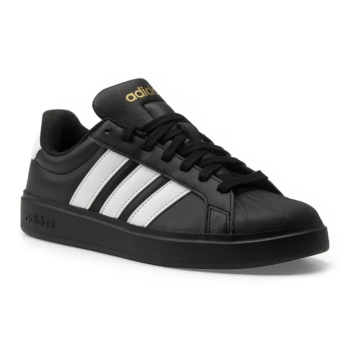 Les chaussures STREETTALK d'Adidas allient style et confort au quotidien. Conçues dans une tige en matière synthétique, elles offrent une silhouette élégante et moderne, parfaite pour les tenues décontractées. Le dessus lisse et le détail des bandes blanches latérales apportent une touche tendance qui s'adapte aussi bien à la marche qu'aux sorties loisirs. La semelle en gomme assure une stabilité discrète, tandis que la doublure intérieure en textile assure un confort durable. L'emblématique logo or sur la langue renforce l'aspect mode de cette sneaker polyvalente, idéale pour une utilisation quotidienne. Disponible en noir, ce modèle incarne le style intemporel avec une touche contemporaine. -