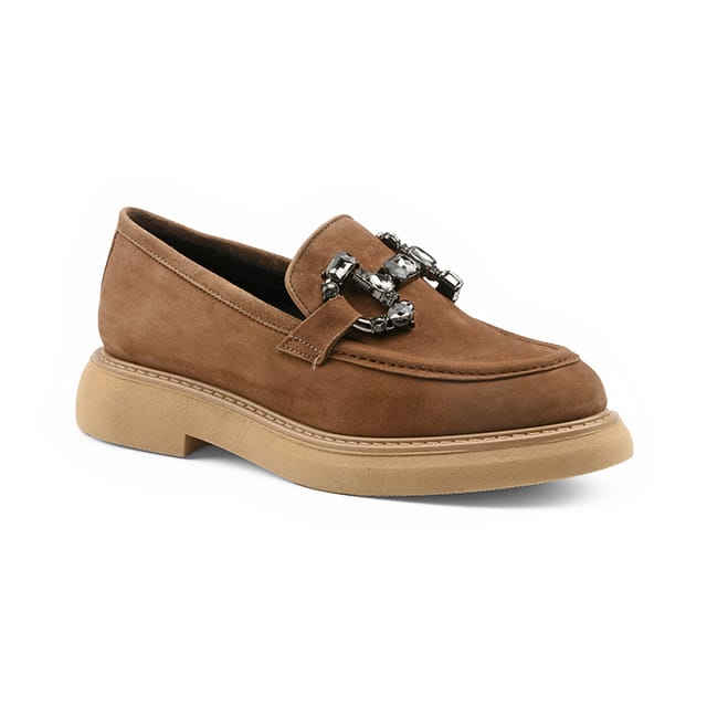 Les mocassins Piso d'Andrea Puccini sont des chaussures de style classique, conçues pour les occasions formelles ou semi-formelles. Fabriqués avec soin en Espagne et en Italie, ils combinent la qualité des matières avec un design raffiné. Le dessus et la tige sont en daim, avec une insertion de bijoux qui ajoute un élément de sophistication. La doublure est en cuir, tandis que la semelle intérieure est également en cuir. La semelle extérieure est en synthétique. Les talons mesurent 35 mm. Les mocassins Piso sont disponibles en une seule couleur, la taupe, qui s'associe parfaitement au style velours du cuir utilisé. Ce modèle est idéal pour les occasions de bureau, les soirées ou les événements, et est caractérisé par son raffinement, son confort et son style. -
