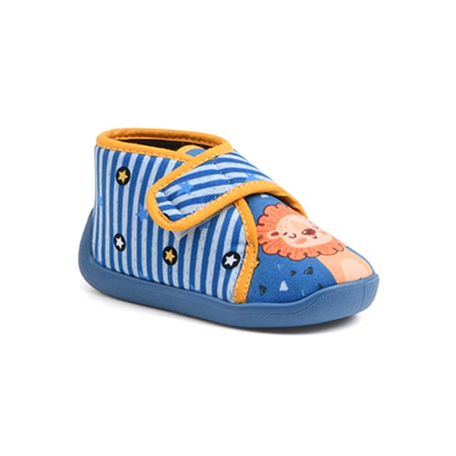 Découvrez les pantoufles Galia de la marque Bossi, idéales pour les petits pieds qui aiment l'hiver. Ces pantoufles confortables sont conçues pour apporter chaleur et douceur aux pieds de vos petits. Leur dessus et tige en textile sont doux et souple, tandis que la doublure en textile assure une isolation optimale. La semelle intérieure en cuir amovible permet une adaptation parfaite à la forme du pied. Les pantoufles Galia présentent une jolie couleur bleue avec des rayures blanches et des accents jaunes autour de l'ouverture. Le devant de la pantoufle arbore un joli lion en patch, avec une teinte orange à la partie supérieure qui se transforme en rose clair en dessous. Des petits boutons en forme d'étoile noirs sont répartis sur les côtés. Un système de Velcro assure un ajustement facile et rapide. La semelle extérieure en gomme est flexible et offre une bonne isolation thermique. Les pantoufles Galia sont parfaites pour les moments de détente à la maison ou pour les sorties en hiver. -