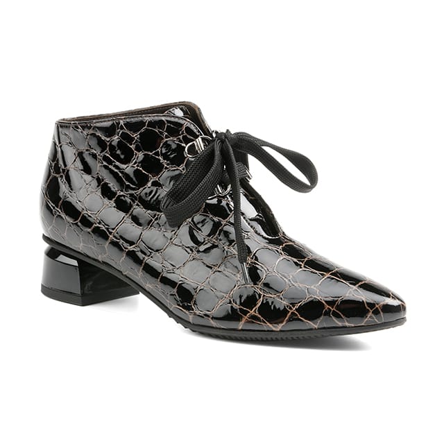 Les bottines Laky de la marque Brunate sont conçues pour les automnes et les hivers froids. Ces bottines décontractées et robustes sont idéales pour les activités extérieures et le travail. Leur cuir verni imitation croco, qui recouvre le dessus et le tige, leur donne une allure élégante et sophistiquée. La doublure en cuir garantit un confort optimal tout en protégeant les pieds des intempéries. Les semelles en gomme offrent une protection solide et une bonne maintien. Les bottes sont équipées de lacets en métal argenté et d'un bottillon en cuir verni imitation croco, ajoutant un touch de sophistication. Les bottines Laky sont disponibles en brun et sont parfaites pour les occasions où un look robuste et élégant est requis. -