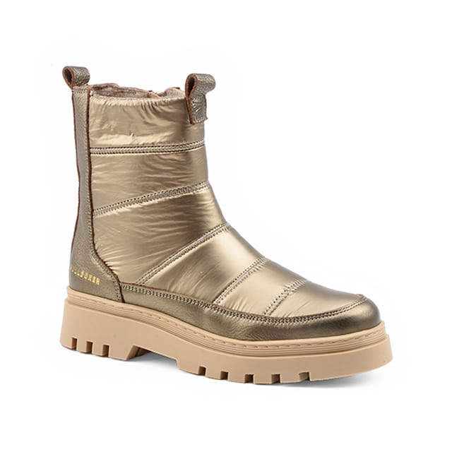 Bottines chaudes Belsize Park de la marque Bullboxer, conçues pour un usage général et quotidien. Ces bottines chic et polyvalentes disposent d'un dessus et d'une tige en cuir et textile, offrant un mélange de style et de confort. Leur doublure textile chaude garantit un confort optimal tout au long de la journée. Les semelles intérieures synthétiques amovibles facilitent la maintenance des bottines. Les semelles en gomme assurent une durabilité et une protection solide. Les détails de la bottine en cuir et textile, comme les visibles coutures sur les panneaux supérieurs et les poignées à chaque extrémité, ajoutent une touche de sophistication. La couleur or éclatante de ces bottines les rend parfaites pour un look élégant et sophistiqué. -