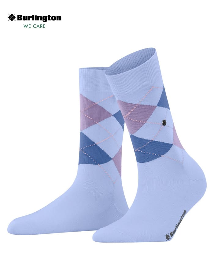 Les chaussettes de ville W's COVENT GARDEN de Burlington allient élégance et confort au quotidien. Confectionnées à partir d’un mélange de 84 % coton organique et 16 % polyamide, elles offrent une finesse remarquable ainsi une respirabilité optimale. Leur tige en maille ajourée et le bord en côtes assurent un ajustement souple et durable. Le motif classique en argyle, aux nuances de rose, violet et bleu marine, s’inscrit dans une forme géométrique de losanges croisés, apportant une touche raffinée. Une petite étiquette latérale et le texte « Burlington » en noir sur le bord inférieur d'une des chaussettes ajoutent une touche discrète de marque. Disponibles en bleu ciel, ces chaussettes s’adaptent aussi bien au bureau qu’à des sorties du soir ou à une tenue quotidienne. Leur style classique et élégant les rend idéales pour compléter un look sobre et soigné. -