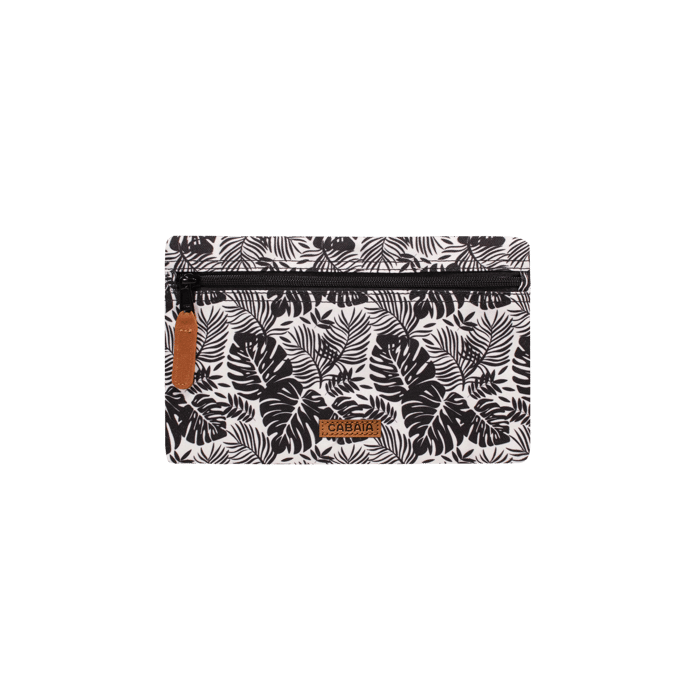 La pochette GORKI de la marque Cabaia est une pochette élégante et chic conçue pour les soirées, les événements et même le bureau. Elle mesure 24 x 15 x 1,5 cm et est faite de 100 % de polyester recyclé pour le dessus et la tige, ainsi que de 100 % de polyester pour la doublure. Cette pochette multicolore est dotée d'une poche fermée par une fermeture à glissière, parfaitement adaptée pour ranger vos cartes de crédit, vos billets ou vos clés. Le design de la pochette GORKI est inspiré de motifs de feuilles tropicales en noir et blanc, créant un contraste agréable avec le fond clair. Un petit tag en cuir brun est attaché à la fermeture à glissière, ajoutant une touche de contraste. Sur le coin inférieur droit, une étiquette rectangulaire orange-brun est cousue sur le matériau, affichant le nom de la marque "CABAIA" en lettres capitales. -