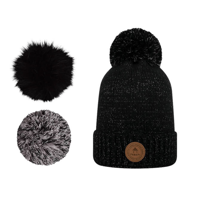 pompons changeable en noir argent, multicolore et noir fausse fourrure -