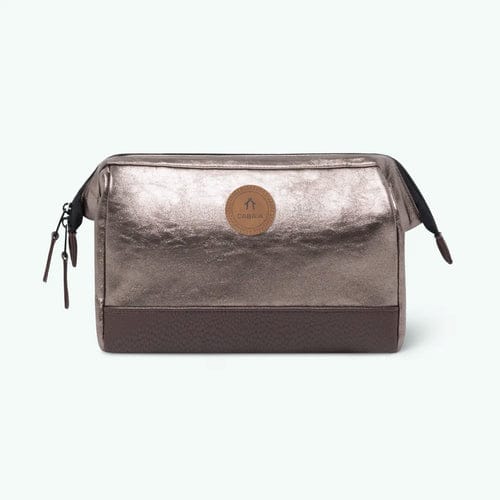La trousse de toilette LOUISVILLE de la marque Cabaia allie élégance et fonctionnalité dans un format compact idéal pour les déplacements. Son intérieur en polyester recyclé à 100 % assure un rangement efficace tout en respectant l’environnement. Conçue dans une esthétique métallique aux finitions texturées, elle se distingue par son aspect élancé et son design rectangulaire. Une patte en cuir foncé sur l'avant, ornée d’un logo Cabaia gravé, ajoute une touche d’élégance. Le fond en cuir rainuré d’un ton plus foncé renforce sa robustesse. Deux fermetures éclair doubles sur le haut permettent un accès facile et sécurisé à l’intérieur, tandis que les poignées latérales intégrées facilitent le transport. Parfaite pour les voyages, les déplacements ou une utilisation au quotidien, cette trousse allie protection, compacité et style pratique. Disponible dans une teinte bronze chaleureux, elle s’inscrit dans la gamme nomade et pratique de Cabaia. -
