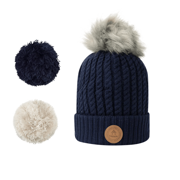 pompons changeable en bleu, beige et gris fausse fourrure -