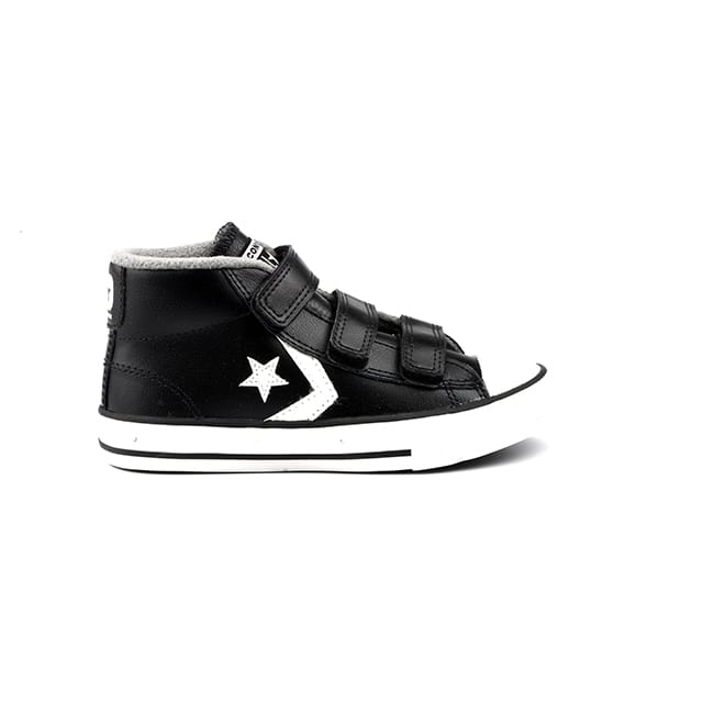 Converse Star Player 3v Mid : Bottines de ville élégantes et confortables pour les petits sportifs. Ces bottines de ville en cuir noir, conçues pour les enfants, combinent style et confort. Le dessus et la tige sont en cuir, tandis que la doublure est en textile chaud pour les pieds. La semelle intérieure est également en textile et la semelle extérieure en gomme offre une protection solide. Les trois bandes de Velcro permettent un ajustement facile et rapide. La collerette en cuir autour de la cheville garantit un confort optimal. Le logo Star Player et le logo Converse apparaissent sur les côtés, ajoutant un touch d'élégance à ces bottines de ville. Conformes à la gamme de produit décontracté et élégant de Converse, ces bottines sont parfaites pour les sorties, le travail ou l'usage quotidien. Elles offrent un mélange parfait de style et de confort pour les petits sportifs. -