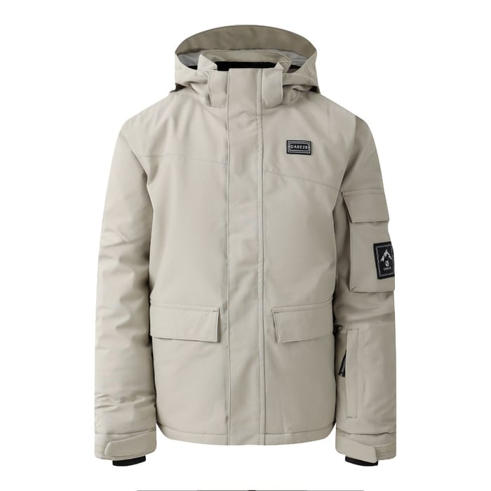 La K's Shredder Jacket de la marque Dare 2 B est une veste de ski technique et fonctionnelle conçue pour les activités en plein air en hiver. Confectionnée dans un polyester recyclé, elle allie légèreté et durabilité tout en offrant une chaleur optimale. Son design beige sobre s'orne d'un détail distinctif au niveau de la poitrine gauche, où une étiquette noire portant le texte blanc « DARE2B » ajoute une touche d'identité. Sur la manche droite, un badge noir met en scène des montagnes au-dessus de symboles croisés, évoquant l'esprit aventureux du ski. La fermeture éclair frontale assure une protection efficace contre les intempéries, tandis que les poignets équipés de brides Velcro permettent un ajustement personnalisé pour plus de confort. Cette veste se prête aussi bien au ski qu’à d'autres activités en neige, grâce à son aspect imperméable et son habillage technique qui répond aux exigences des sorties hivernales. -