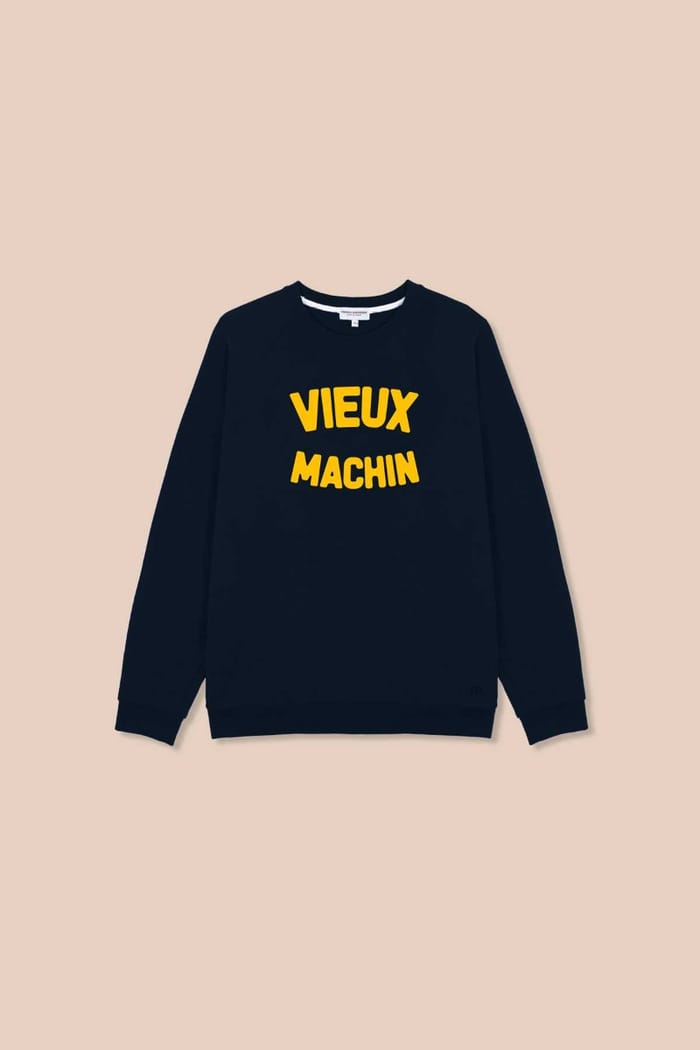 SWEAT CLYDE VIEUX MACHIN NAVY (écriture jaune citron) -