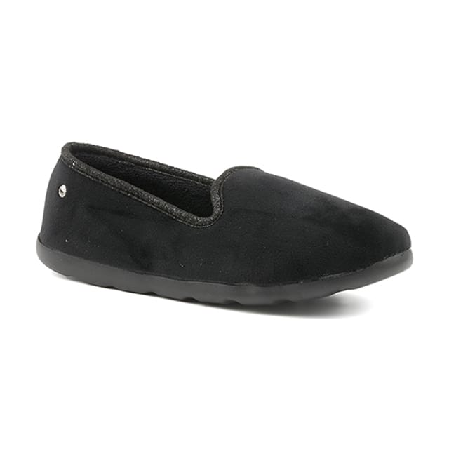 Isotoner 97353 : Pantoufles en velours noires pour confort et chaleur à la maison.