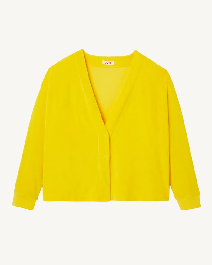 Le sweat-shirt PAMPLONA de la marque Jott est un article décontracté et cosy conçu pour les loisirs et la détente. Ce cardigan en coton 100% est parfait pour les journées froides ou les soirées en famille. Avec son design à col V et ses longues manches, il offre une chaleur et un confort optimaux. Les manches et le bas sont garnis de bandes de tricot pour une tenue élégante. Les boutons blancs qui fermant le devant du cardigan se fondent harmonieusement dans le tissu. Le logo Jott est discretement affiché sur l'intérieur du col. Le PAMPLONA est disponible en jaune, une couleur qui rayonne de soleil et qui ajoute une touche de joie à votre garde-robe. Ce sweat-shirt est idéal pour les occasions quotidiennes, les sorties en famille ou les moments de détente. -