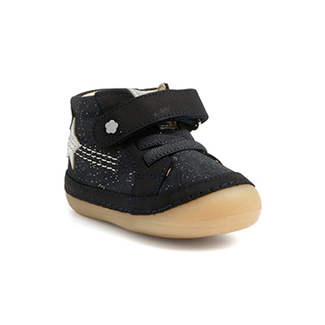 Les bottines Sokistic de la marque Kickers sont conçues pour les premiers pas de votre enfant. Ces bottines à velcro sont élégantes et polyvalentes, parfaites pour les journées de tous les jours. Leur dessus et tige en daim offrent un confort optimal, tandis que la doublure en cuir garantit une durabilité exceptionnelle. La semelle intérieure en cuir est amovible, ce qui facilite la maintenance des chaussures. La semelle extérieure en gomme offre une bonne protection sol. Les bottines Sokistic sont disponibles en bleu marine, une couleur chic et élégante qui conviendra à votre enfant. Les deux bandes de velcro, l'une près de l'articulation et l'autre plus près du bout du pied, permettent un ajustement facile et rapide. Un petit bouton en forme de trèfle argenté est attaché à la bande supérieure de velcro, ajoutant un détail charmant à ces bottines. Les bottines Sokistic sont conçues pour offrir un maintien, un confort et une durabilité exceptionnels, ce qui les rend idéales pour les journées de tous les jours. -