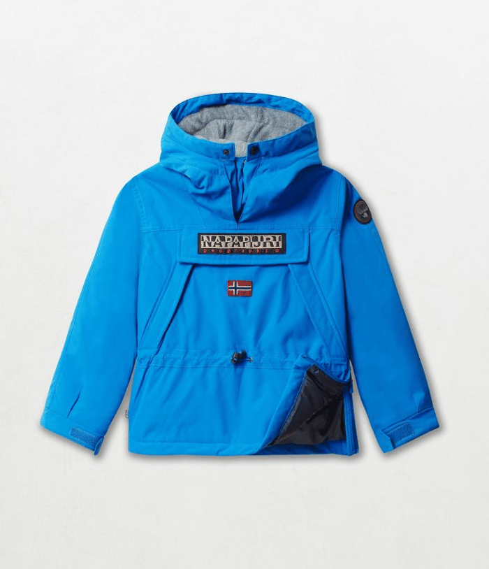 Veste de ski K's Skidoo de la marque Napapijri, conçue pour les activités extérieures et les sports d'hiver. Cette veste technique est disponible en bleu royal et offre une combinaison parfaite de fonctionnalité et de confort. Elle est équipée d'une fermeture éclair à l'avant avec boutons de pression, ainsi que de deux poches à la poitrine, dont une comporte le logo de la marque "NAPAPIJRI" sur un patch noir et blanc. La veste dispose également d'une poche supplémentaire à la partie inférieure et d'un badge circulaire sur la manche gauche. Les manches sont dotées de bandes de Velcro ajustables pour un ajustement précis. La conception de cette veste de ski est pensée pour offrir une protection contre le froid et la pluie, tout en garantissant un confort optimal pour les activités extérieures. -