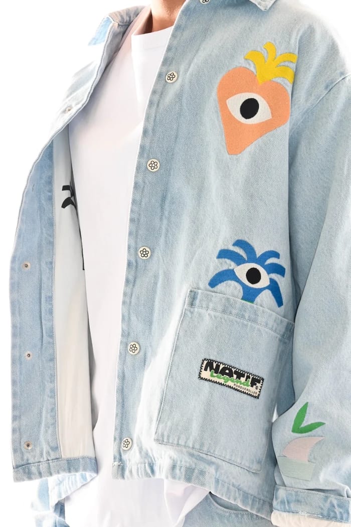 La veste GENESIS TATOOS DENIM de la marque Natif allie élégance décontractée et style audacieux pour s’adapter à toutes les occasions. Conçue comme une veste ou une surchemise, elle se distingue par son bleu ciel intemporel, parfait pour un look à la fois chic et moderne. Son design unique met en valeur des broderies originales et ludiques : un patch en forme de cœur orné d’un œil central, surmonté de feuilles jaunes évoquant une touche exotique, tandis qu’un autre motif en forme d’œil bleu orne le rabat de la poche droite. Ces détails artistiques renforcent son caractère distinctif et son côté streetwear sophistiqué. Fabriquée pour allier confort et protection, cette veste est idéale pour le quotidien, le travail ou les sorties. Ses boutons argentés, à la fois pratiques et esthétiques, permettent d’ajuster le fit selon vos préférences, tandis qu’une petite touche végétale verte près de l’hémisphère droit de la manche ajoute une subtile note graphique. Le label "NATIF" en lettres blanches, apposé sur un fond noir en bas du devant, souligne l’identité de la marque avec une touche minimaliste et élégante. Parfaite pour ceux qui recherchent une pièce à la fois fonctionnelle et expressive, cette veste incarne l’esprit décontracté et chic de la collection. -