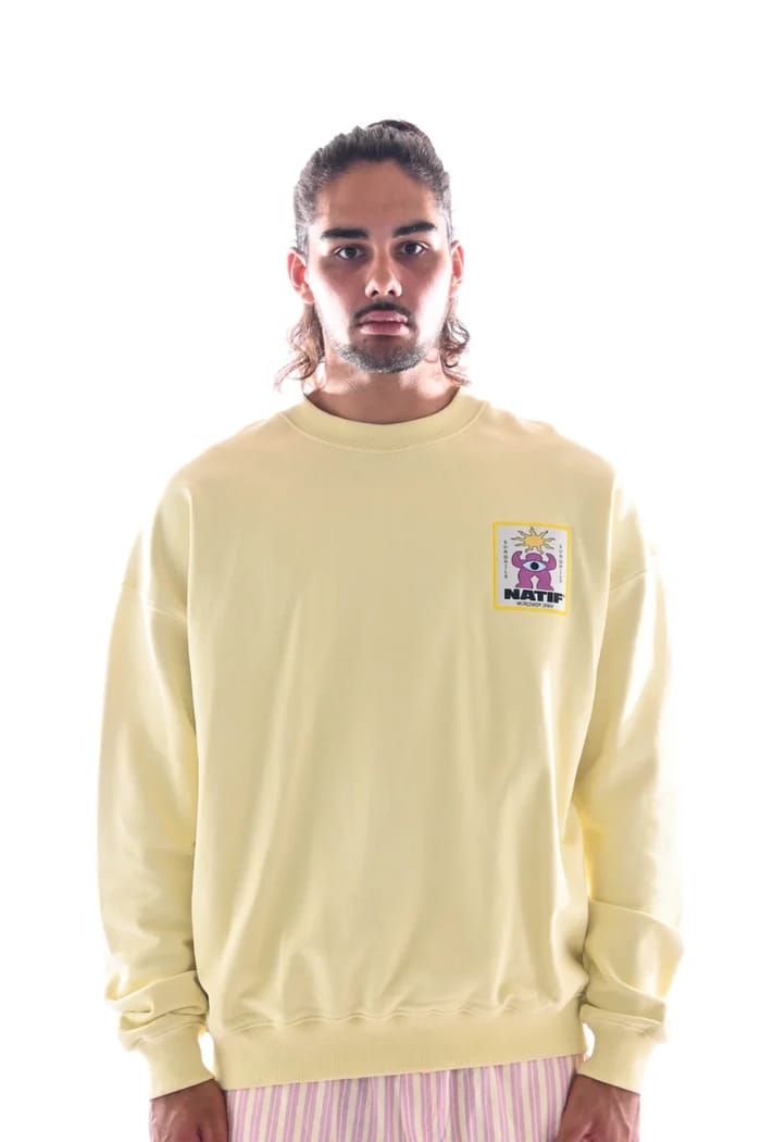 Le sweat-shirt SWEAT LOOSE SUNCHILD de la marque Natif incarne l’alliance parfaite entre décontraction et confort. Conçu pour un usage quotidien, ce modèle à col rond se distingue par son style cosy, idéal pour les moments de détente ou les loisirs. Fabriqué dans un tissu chaleureux, il garantit une sensation de bien-être à chaque port. Son design emblématique met en avant une touche graphique unique : un patch carré sur la poitrine gauche représentant un personnage cartoon à l’œil malicieux, surmonté d’un soleil rayonnant. Autour de cette illustration, des caractères japonais ajoutent une touche d’originalité, tandis que le mot "NATIF" en lettres audacieuses renforce l’identité de la marque. La couleur jaune vif apporte une énergie joyeuse et dynamique, parfaite pour ceux qui aiment allier style et personnalité. Polyvalent et intemporel, ce sweat-shirt s’intègre aussi bien dans une tenue décontractée que dans un look plus urbain, tout en restant un incontournable pour les amateurs de pièces à la fois confortables et stylées. -