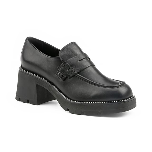 Nero Giardini Camerata : Mocassins classiques en cuir noir avec talon de 60 mm.
