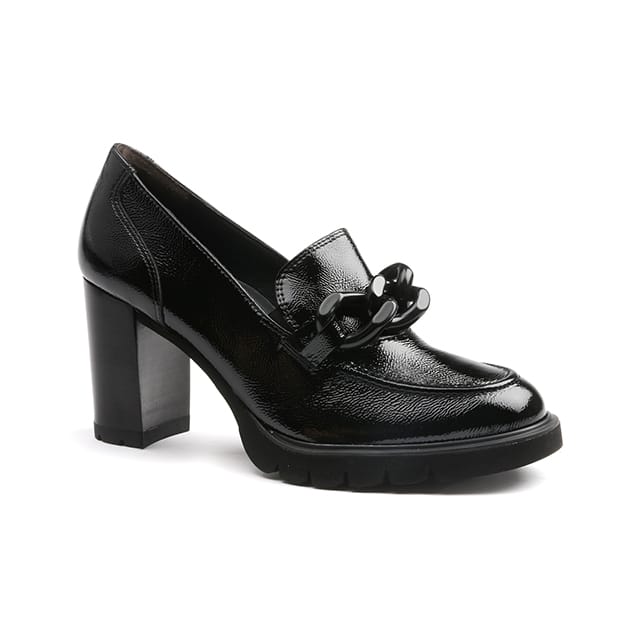 Ariane Paul Green, Mocassins classiques en cuir verni noir, confort, style.