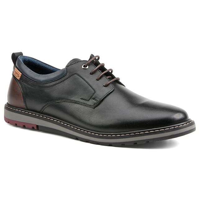 Les chaussures Berna de Pikolinos sont des chaussures à lacets classiques et polyvalentes, idéales pour les occasions de bureau, les sorties ou l'usage quotidien. Confectionnées en cuir de haute qualité, ces chaussures présentent un style Derby en cuir noir, avec des lacets et des œillets en cuir foncé. Le dessus est en cuir, tandis que la doublure est en textile bleu, offrant un confort optimal au porteur. La semelle intérieure est en cuir amovible, tandis que la semelle extérieure est en gomme. Les chaussures Berna de Pikolinos combinent ajustement, confort et durabilité, garantissant un usage longue durée. -