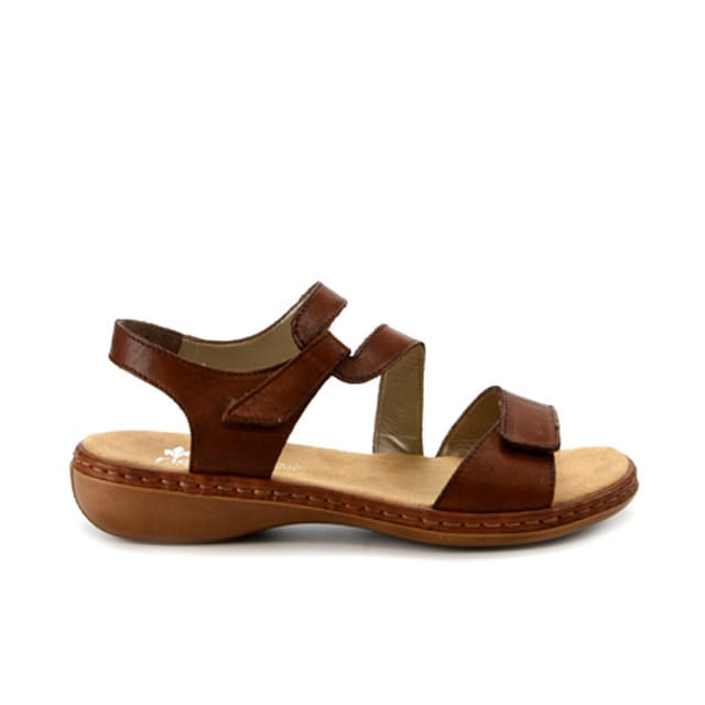Sandales Clarino de Rieker, une paire de sandales plates en cuir brun qui offre un confort et une légèreté exceptionnels. Le dessus et la tige sont en cuir, tandis que la doublure est en synthétique pour une durabilité optimale. La semelle intérieure est en textile pour une sensation de confort supplémentaire. La semelle en synthétique est épaisse et coussinée pour une prise solide et une protection des pieds. La talonnière mesure 30 mm, offrant une protection des pieds sans compromettre la légèreté. Les sandales Clarino sont idéales pour les vacances, la plage ou le quotidien, grâce à leur design décontracté et estival. Les chaussures Rieker sont connues pour leur légèreté, leur flexibilité et leur confort, ce qui en fait une excellente option pour les personnes qui recherchent des chaussures pratiques et agréables à porter. -