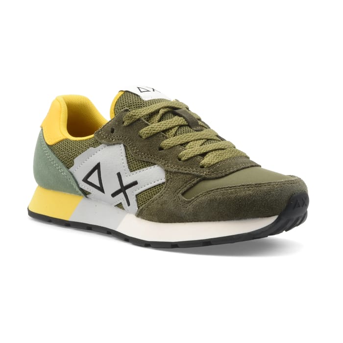 Les Sun68 Boy's Jaki sont des sneakers à velcro conçues pour allier style et praticité au quotidien. Leur dessus en daim textile, doux et résistant, se marie parfaitement avec des détails en cuir velours et textile, offrant une touche élégante et intemporelle. La semelle intérieure amovible en textile garantit un confort optimal, tandis que la semelle en gomme assure une bonne durabilité pour une utilisation régulière. Idéales pour les loisirs ou les déplacements, ces sneakers se distinguent par leur design décontracté et polyvalent. Leur coloris kaki, rehaussé de nuances plus claires, apporte une touche moderne et intemporelle, parfaite pour les amateurs de sneakers tendances. Légères et faciles à enfiler grâce à leur système à velcro, elles s’adaptent à toutes les occasions, du quotidien aux moments plus actifs. -