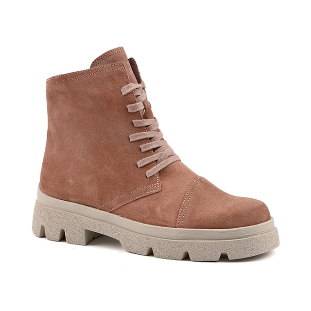 bottine en cuir velours à lacets avec fermeture éclair