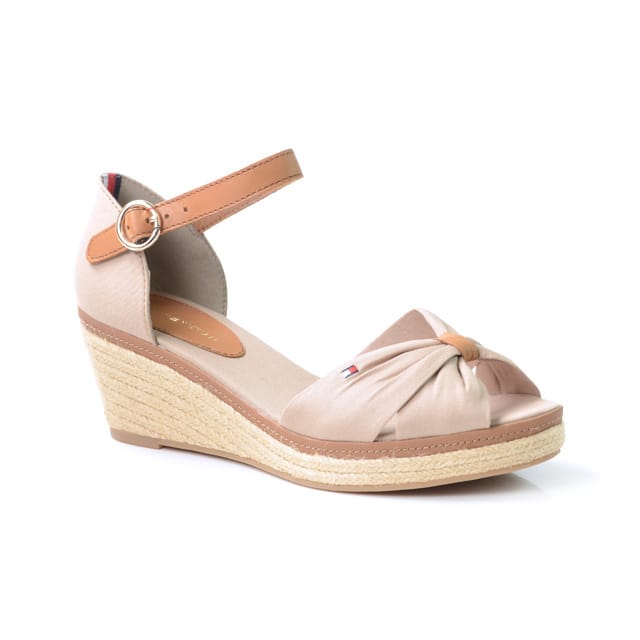 La sandale Iconic Elba de Tommy Hilfiger est une icône du style casual féminin. Cette sandale compensée en textile est dotée d'un talon de 60 mm et d'une semelle en gomme. Le dessus et la tige sont en textile, tandis que la doublure et la semelle intérieure sont également en textile. La sandale est ornée d'un détail en satin beige sur la zone du bout, ajoutant un touch de sophistication. Le cuir simulant le cuir est utilisé pour la partie arrière de la chaussure et la semelle, donnant une touche de luxe. La sandale est idéale pour les sorties estivales, les soirées ou les occasions de mode. Elle offre un mélange parfait de style, de confort et de stabilité, ce qui en fait une excellente option pour les femmes qui recherchent une chaussure élégante et pratique. -
