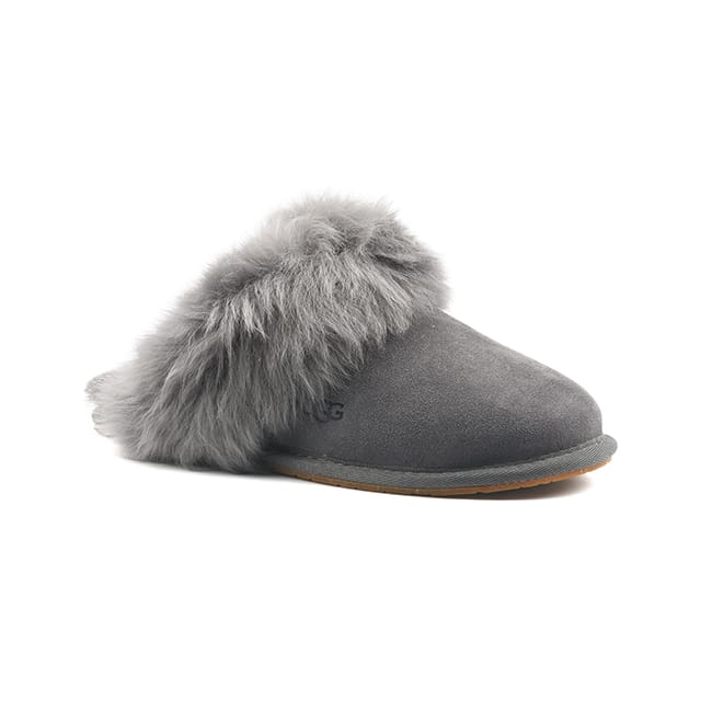 Pantoufles UGG Scuff Sister, mouton retourné, douceur, chaleur, gris.