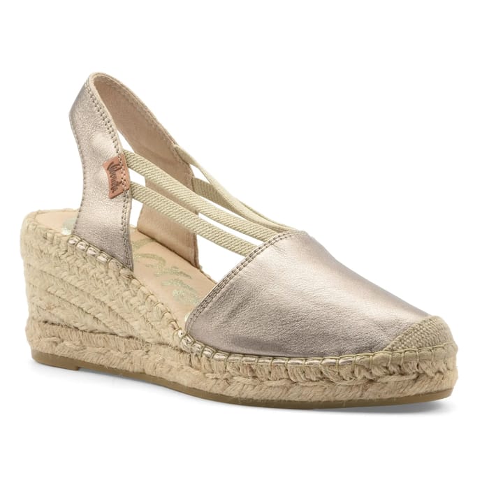 Les Cuedra de Vidorreta allient élégance intemporelle et confort raffiné pour une silhouette féminine et audacieuse. Conçues dans un cuir métallisé brillant aux reflets bronze, ces espadrilles à talon de 90 mm se distinguent par leur allure sophistiquée, tout en restant accessibles au quotidien. La tige élastique, renforcée par des détails en cuir métallisé comme un sling stylisé, épouse parfaitement la forme du pied pour un maintien optimal sans sacrifier le style. À l’intérieur, une doublure soignée alliant textile doux et cuir assure un confort prolongé, tandis que la semelle en corde tressée et gomme offre une stabilité naturelle et une légère amortisation. La semelle intérieure synthétique, discrètement décorée, ajoute une touche d’originalité tout en garantissant un bon maintien de la voûte plantaire. Idéales pour les occasions comme pour les balades urbaines, ces Cuedra incarnent l’esprit décontracté et chic de la marque Vidorreta. -