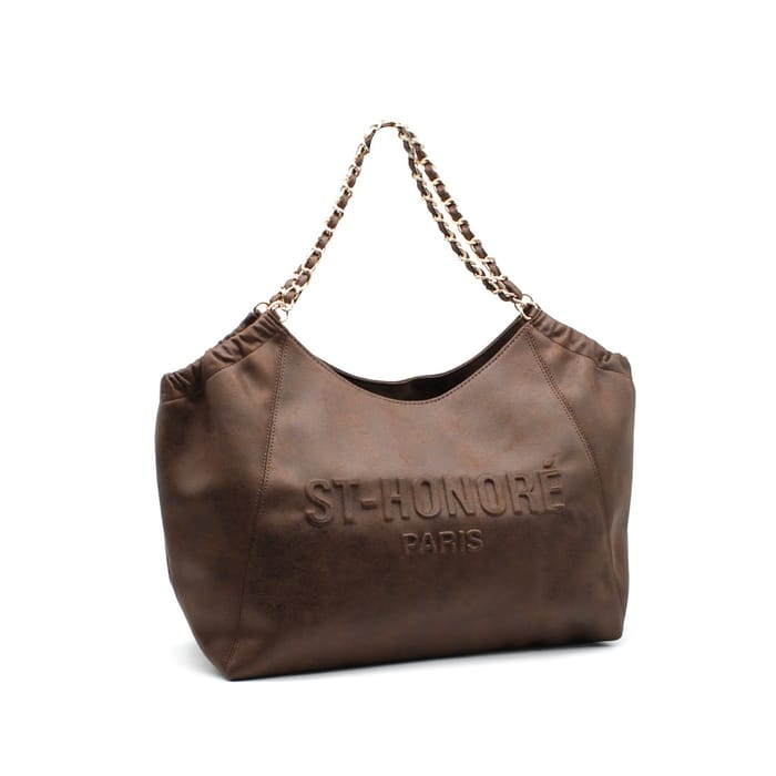 Le sac à main 6706 de la marque Vimoda allie élégance et fonctionnalité dans un design intemporel. Sa finition brun clair en cuir synthétique lisse et légèrement texturé lui confère une allure raffinée, tandis que l’emblème gravé « ST-HONORÉ PARIS » sur l’avant ajoute une touche d’identité distinctive. Deux ans en cuir entrelacé, rehaussés de maillons en chaîne dorée, offrent un porté main confortable et un style affirmé. L’intérieur doublé en matière synthétique assure un rangement pratique pour les essentiels du quotidien. Idéal pour les sorties, les loisirs ou les achats, ce sac s’inscrit dans la gamme mode et tendance, alliant praticité, rangement efficace et transport facile. Son design épuré convient aussi bien en usage semi-formel qu’en tenue décontractée. -