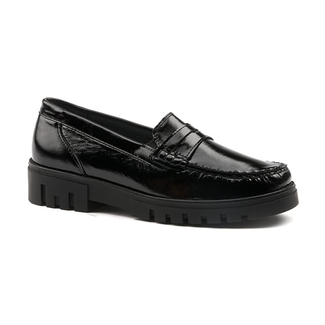 Waldlaufer Serene H : Mocassins sport en cuir verni noir, confort, polyvalence.