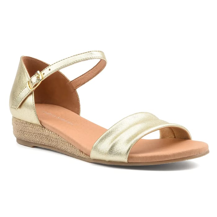 metallic leather wedge sandals