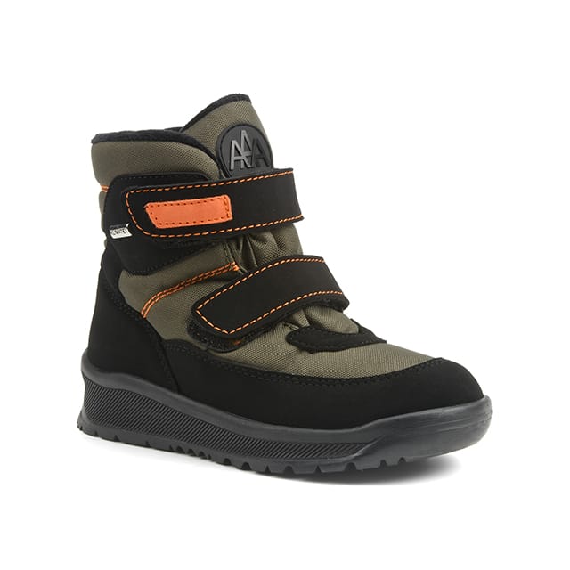 The Antar snow boots, designed by the brand Antarctica, are ideal for outdoor activities in winter. These functional and sturdy boots feature a textile top and upper, providing optimal comfort. The warm textile lining and warm textile insole ensure consistent warmth, even in the coldest conditions. The rubber sole provides strong protection and stability needed for snow activities. The two adjustable hook and tab strips ensure a secure fit. The orange stitching details add an aesthetic touch to the boots. The khaki color is ideal for outdoor activities. The Antar boots are designed to withstand water and snow, ensuring a comfortable and safe experience in winter. -