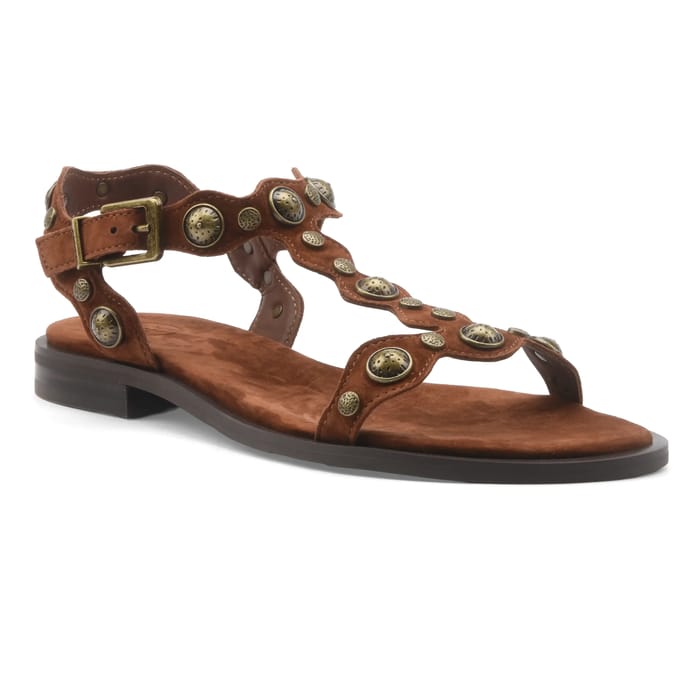 These PHANNY flat sandals from the brand Ash combine elegance and comfort for everyday use or holidays. Designed in durable velvet leather, they offer a soft, silky texture, ideal for extended wear. The metal stud details add a stylish, modern twist, perfect for sublimating a casual or summery outfit. The synthetic sole ensures lightness and stability, while the leather lining and insole enhance comfort and breathability. With a 20 mm heel, these sandals naturally follow the shape of the foot for a perfect fit. Their timeless design and versatility make them an essential accessory for the beach, walks or relaxing moments. -