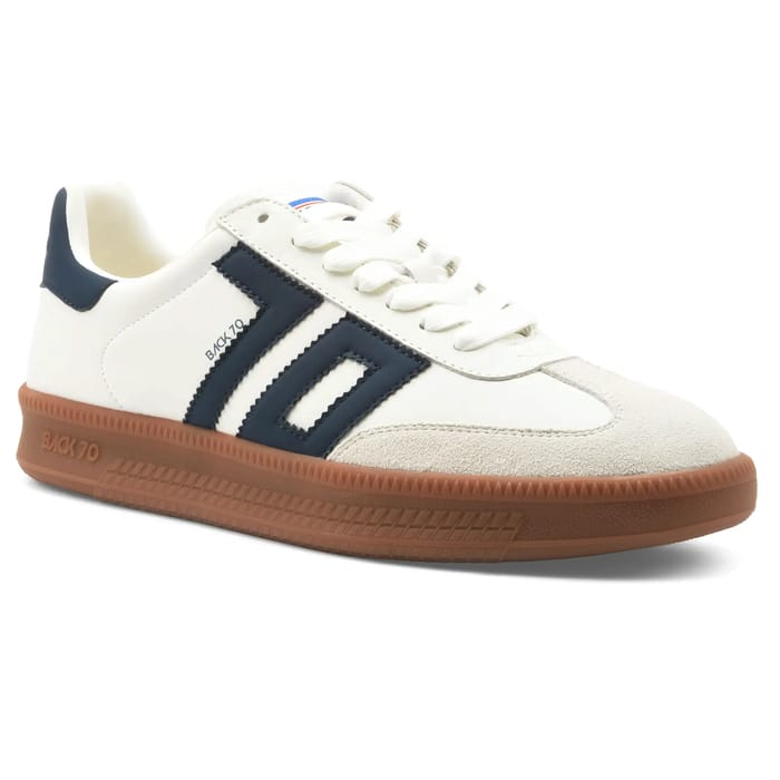 The Back 70 DOUBLE V26-02 embodies the perfect combination of timeless style and everyday comfort. Designed as versatile sneakers, they cater to all moments of the day, whether for an urban stroll, a shopping session or relaxation in leisure. Their leather and synthetic upper combines durability and light weight, while the rubber sole offers optimal cushioning for extended wear. The minimalist and elegant design, marked by neat details like the three thin side stripes and the discreet logo on the back, makes it a must-have of the modern wardrobe. The textile lining and synthetic insole enhance comfort, while the white fabric laces ensure a closure that is both practical and aesthetic. Their off-white hue, enhanced by deeper shades, gives them a fresh yet timeless look, ideal for those looking for a trendy style with no compromise on comfort. -