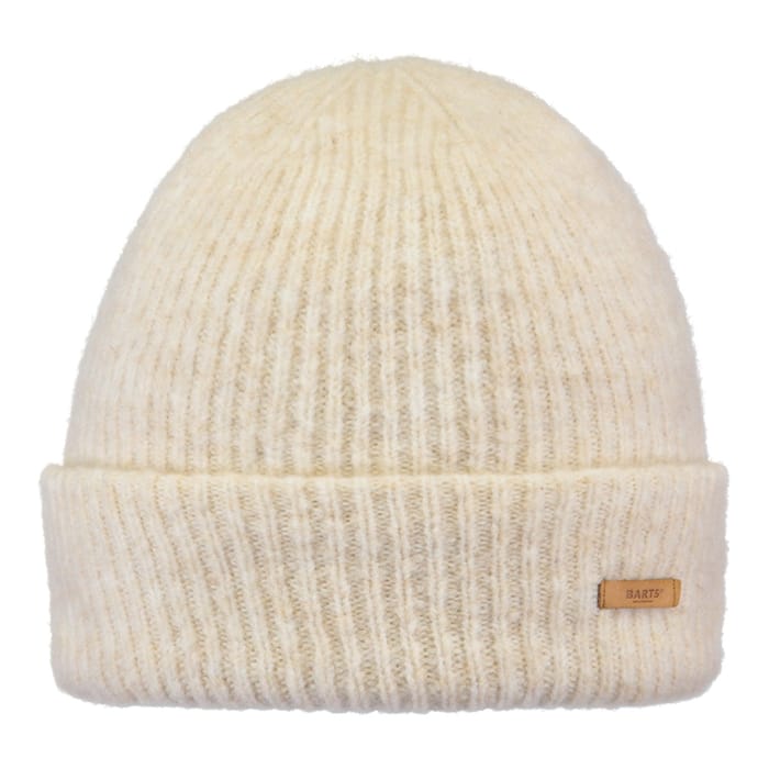 The W's WITZIA BEANIE hat from the brand Barts is a functional and casual fashion accessory for winter and outdoor activities. Made of 74% acrylic, 23% polyamide and 3% elastane, this cap is soft and warm, perfect for cold days. It features a sober and elegant style, with a simple design that highlights the beige color. The cap is equipped with a folded cuff for better protection against the cold and a more elegant style. A small rectangular leather tag is stitched on the cuff, displaying the brand name "BARTS" in capital letters. This beanie is ideal for outdoor activities, such as hiking or city trips, and can also be worn daily to add a touch of style to your outfit. -