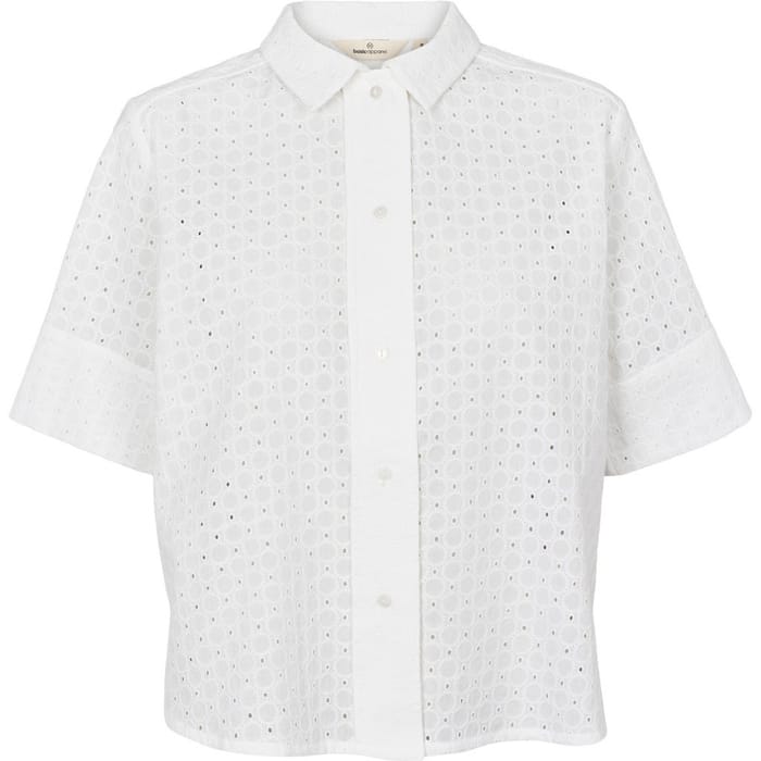 The W's Adie SS Shirt from Basic Apparel combines elegance and comfort to fit any formal occasion. Designed in 100% organic cotton, this short-sleeved shirt breathes perfectly, ensuring a feeling of freshness throughout the day. Its neat fit and refinement make it an ideal choice for office, ceremonies or special events. The pure white color, combined with a classic fit and a structured collar, reinforces its timeless and chic look. Functional details, such as the lightweight circular perforation on the fabric, add a subtle touch while preserving durability. Perfect for those looking for a balance between style and practicality, this shirt embodies the essence of a minimalist and versatile wardrobe. -
