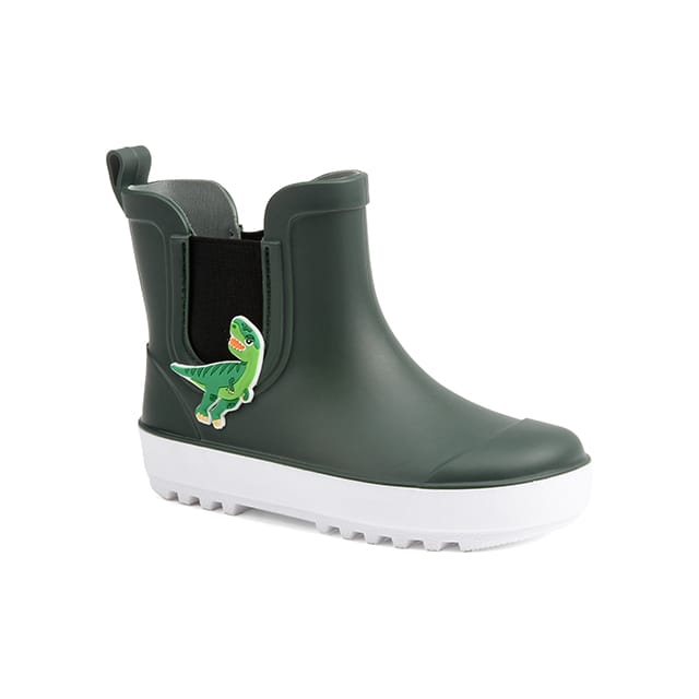 The rain boots Tiny of the brand Be only are designed for everyday outdoor activities. These functional and casual boots are perfect for rainy days. Their synthetic sole and textile lining ensure optimal comfort. The textile and removable insole makes cleaning and maintenance easy. The Tiny boots are waterproof and protect the feet from bad weather. The khaki color is ideal for outdoor activities. The rain boot adds a fashion touch to these functional boots. A small colorful patch of a dinosaur on the outside, near the ankle, adds a fun element. A black elastic panel on the side makes it easy to adjust. A draw flap on the back makes it easy to dress up. -