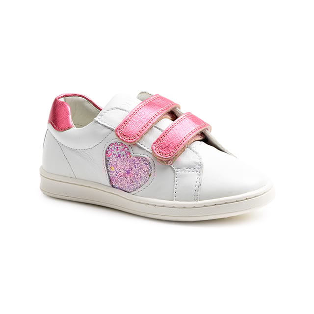 The Benjie is a casual and practical pair of sneaker, ideal for everyday activities and leisure. Designed for kids, it offers a versatile and comfortable style. Its rubber soles ensure a solid base, while its removable leather insoles guarantee a perfect fit. The leather lining adds a touch of comfort, as does the leather upper and upper. The two Velcro strips allow for an easy and fast fit. The Montreux is available in white with pink accents, making it particularly appealing to children. A charming detail is the leather basket that adds a touch of sophistication. This pair of sneaker is perfect for small explorers who love to run and play freely. -
