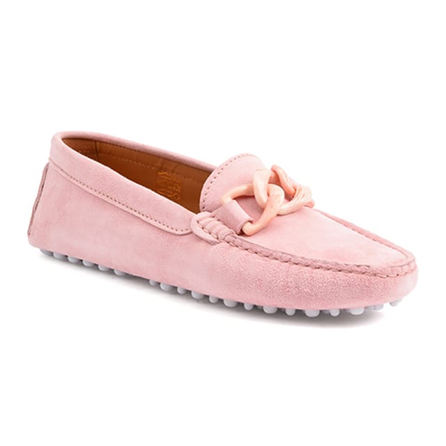 The Britt loafers of the brand Bobbies are luxury shoes that combine style and comfort. These classic loafers are made of velvet leather and feature a 10 mm heel. Their top and stem are suede and adorned with an insert jewelry, adding an element of sophistication. The lining is leather, offering softness and superior quality. The inner and outer soles are also made of leather, ensuring optimal comfort while offering an elegant appearance. The Britt loafers are available in pink, a chic and formal color that will suit perfectly for business occasions or evenings. They are ideal for offices, events or parties, as they offer unparalleled refinement and style. -