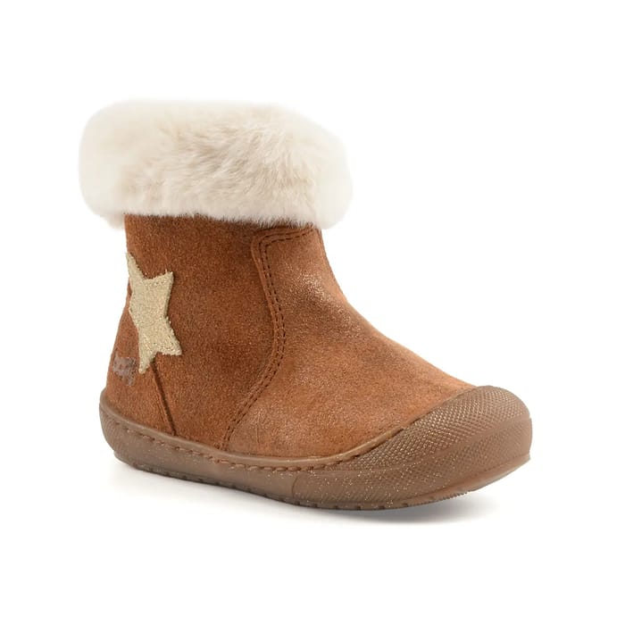 The boots Judy of the brand Bopy is a fashion accessory for toddlers. This ankle boot is designed with a nubuck top, a soft and durable leather fabric, which offers a touch of sophistication to the set. The top is lined with a textile for optimal softness and warmth. The insole is leather, removable and easy to clean, making it easy to maintain the ankle boot. The outsole is made of rubber, which guarantees durability and resistance to wear. The details of this ankle boot are carefully designed to appeal to small feet. The upper part of the boot is lined with a faux fur in white hair, which adds a touch of softness and warmth. A pretty star-shaped appliqué, in glittering material, adorns the front part of the boot, adding a touch of fantasy to the set. The seams visible on the sides and back of the boot demonstrate the quality of its construction. The outsole is made of rubber, which guarantees durability and wear resistance on various surfaces. -