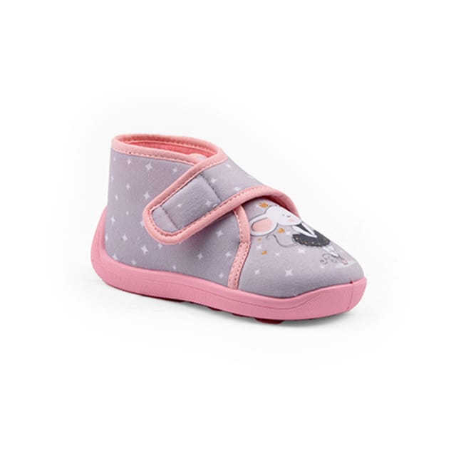 The Slippers Galia of the brand Bossi are designed for comfort and softness. These textile slippers are ideal for cold winters, offering exceptional warmth and flexibility. Their top and upper are made of textile, while their lining is also made of textile. The insole is made of removable leather, providing extra protection for the feet. The outsole is made of rubber, guaranteeing durability and resistance to wear. The Slippers Galia are available in grey, a neutral and elegant color that suits all styles. They are perfect for children who love pastel colors, as they are adorned with small white stars on a background of pale pink fabric. A colorful drawing character sits near the opening of the slipper, adding an element of entertainment to these comfortable shoes. The adjustable hook and tongue shoulder strap allows for quick attachment and detachment. The Slippers Galia are a great option for children who like to relax at home or who prefer indoor activities during cold winters. -