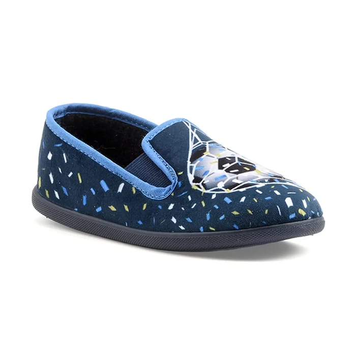 The Sentil slippers from the brand Bossi are designed for optimal comfort and softness. These functional and comfortable slippers are ideal for relaxing moments at home, in winter. Their upper and stem are made of textile, while the lining is also made of textile. The insole is leather and removable, providing additional protection. The outsole is made of rubber, providing flexibility and durability. Sentil slippers are available in a single color, navy blue, with textile details that add a touch of color with multicolored confetti. The top of the slippers sports a large graphic of a football in black, white and gray, with touches of the same color as the confetti. A light blue elastic band surrounds the opening for easy adjustment. Sentil slippers offer warmth and softness, with flexibility that make them ideal for moments of relaxation. -