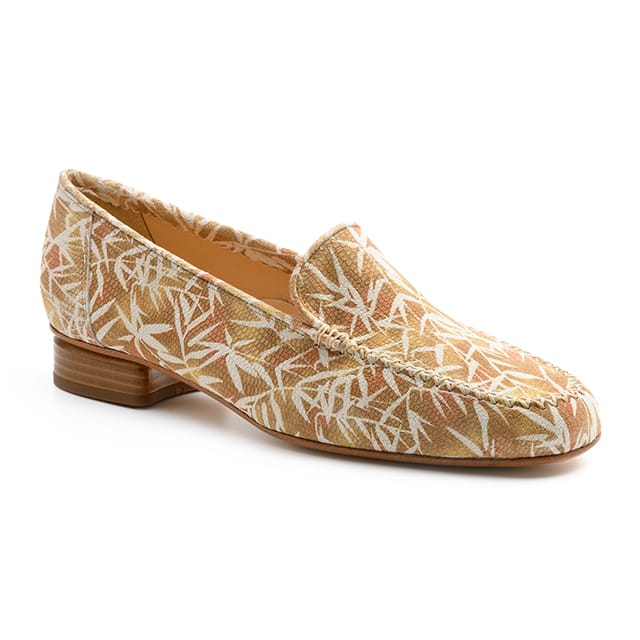 The Palm of the brand Brunate are classic loafers designed for formal occasions. These stylish shoes feature a printed leather upper with white leaf patterns on a beige background, offering a stylish and unique style. The lining and insole are also made of leather, ensuring optimal comfort throughout the day. The sole is made of leather, while the heel measures 25 mm, making it an ideal model for evenings or events. The Palms are perfect for business or social occasions, offering both classy style and unparalleled comfort. -