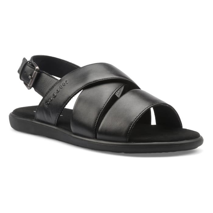 These flat sandals Dove of the brand Bugatti combine elegance and practicality for everyday use, summer or seaside. Designed in soft and durable leather, they perfectly fit the shape of the foot while offering exceptional lightness. Their textile lining and fabric insole guarantee optimal breathability, ideal for long days in the sun or seaside getaways. The rubber sole, both comfortable and non-slip, ensures discreet stability for a smooth walk, whether on the sand or on the pavement. The sleek design, marked by wide and crossed straps as well as an adjustable strap with the help of a buckle, combines simplicity and refinement. The black leather, sober and timeless, fits as well in a casual outfit as in a more dressed look. Perfect for holidays or everyday wear, these Bugatti sandals embody the art of combining comfort and style with a touch of boldness. -