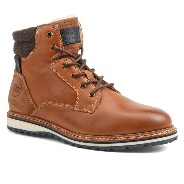 The hot boots Bugatti Fino are designed for general and everyday use. These versatile and comfortable cognac leather ankle boots feature a wool lining for optimal foot support. The wool insole also ensures exceptional comfort. The rubber outsole guarantees durability. The details of the ankle boot, such as the leather upper and laces, are stylishly designed for a chic style. The metal buttons for laces add a touch of sophistication. A Bugatti logo is embossed on the heel, recalling the history of the brand. The Fino Bugatti ankle boots are ideal for everyday occasions, offering a perfect blend of comfort, durability and style. -