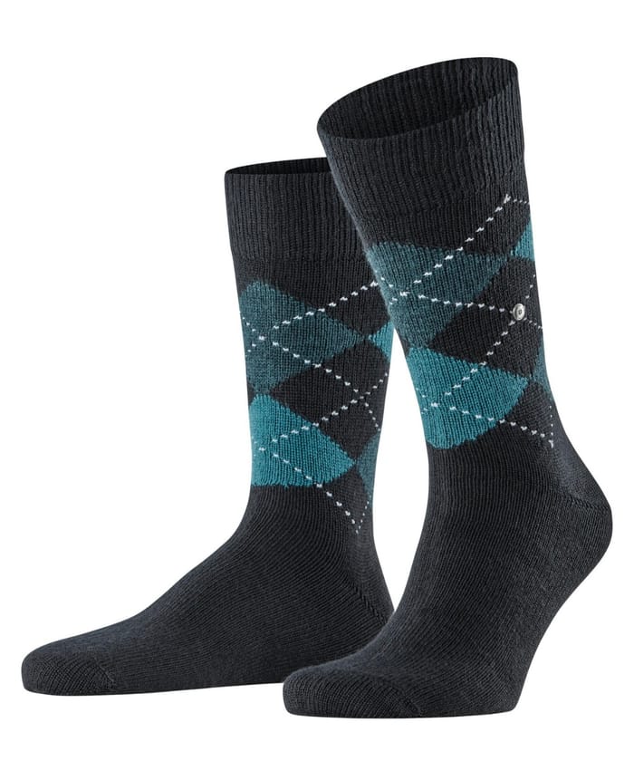 Discover the M'S PRESTON SO city socks from the brand Burlington. These stylish and classic socks are designed to meet your daily needs. Made of 83% acrylic and 17% polyamide, they offer exceptional comfort and breathability. Their finesse and softness make them ideal for formal or informal occasions. The M'S PRESTON SO socks are perfect for evenings, office meetings or simply for your daily life. Their argyle design, with blue-green and dark grey patterns, is complemented by white dotted lines forming squares on the top. A small button near the top edge adds a finishing touch to this pair of socks. -