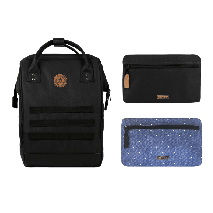 Rucksack Berlin of the brand Cabaia, designed to meet the needs of work, study and hiking. This functional and versatile backpack features a synthetic top and upper, as well as a synthetic lining for optimal durability. It features multiple attachments for hanging accessories, sturdy handles and shoulder straps for a comfortable fit. The backpack is available in black, a neutral and elegant color that suits all styles. The details of this backpack are carefully designed to meet the needs of the user, with efficient storage and strength that withstands harsh conditions. -