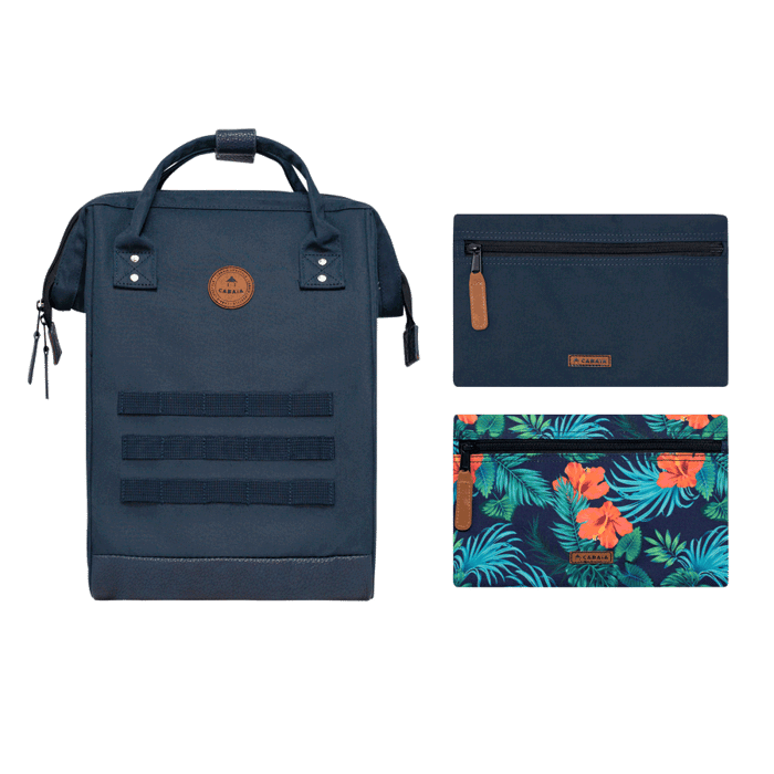 The backpack Reykjavik Medium Size 23L of the brand Cabaia is a versatile bag designed to meet the needs of work, study and hiking. It is made of 100% recycled polyester for the upper and lining, and polyurethane for the outer surface. This backpack offers excellent storage thanks to its compartments and multiple pockets, including a navy zipped pocket that matches the color of the bag. A colorful pocket with orange and green floral patterns completes the set, providing a touch of personality. Comfort is also a key aspect of this backpack, with wide shoulder bands and side handles for better weight distribution. Solidity is guaranteed thanks to the robust design and quality of the materials used. The Reykjavik Medium Size 23L backpack is an ideal choice for those looking for a versatile and functional bag for their daily activities. -